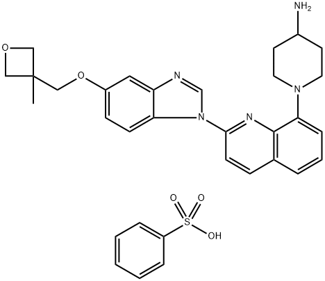 Crenolanib has 25-fold more affinity for PDGFRA/B compared with KIT, and is approximately 135-fold more potent than STI571 for inhibiting the PDGFRA D842V mutation. The IC50?for crenolanib for a KIT exon 11 deletion mutant kinase is greater than 1,000 versus 8 nM for STI571. Crenolanib has low nanomolar potency against the V561D + D842V-mutant kinase that is similar to its potency against the isolated D842V mutation. Both STI571 and crenolanib potently inhibit the kinase activity of the fusion oncogene with IC50?values of 1 and 21 nM, respectively, and inhibits PDGFRA activation in this cell line with IC50?values of 93 and 26 nM, respectively. HL60/VCR and K562/ABCB1 cells, overexpressing ABCB1, are 6.9- and 3.6-fold resistant to crenolanib, respectively, in relation to parental HL60 and K562 cells. PSC-833 fully reverses resistance to crenolanib in both HL60/VCR and K562/ABCB1 cells. Crenolanib (1 nM-10 μM) stimulates ABCB1 ATPase activity in a concentration-dependent manner. Crenolanib treatment does not increase the cell surface expression of ABCB1. Crenolanib inhibits [125I]-IAAP photocrosslinking of ABCB1 at high concentrations, with 50 % inhibition at 10 μM, but has little effect at lower concentrations, below 1 μM. Crenolanib decreases NSCLC cell viability, induces apoptosis in NSCLC cells, and inhibits cell migration in NSCLC cells |