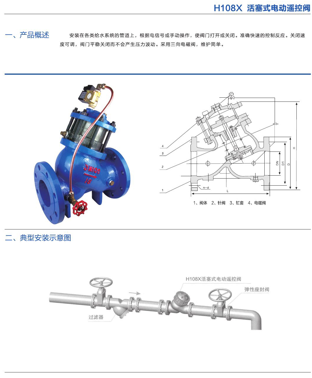 安裝在各類給水系統的管道上,根據電信號或手動操作,使閥門打開或關閉。準確快速的控制反應。關閉速度可調,閥門平穩關閉而不會產生壓力波動。采用三向電磁閥,維護簡單。