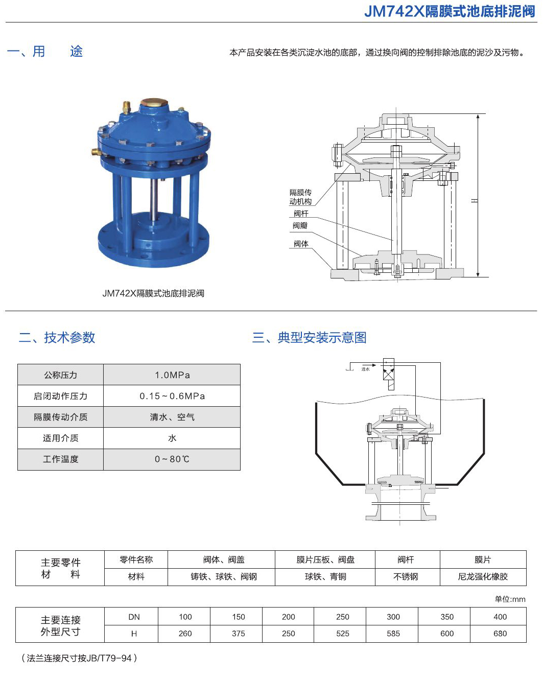 本產(chǎn)品安裝在各類沉淀水池的底部,通過(guò)換向閥的控制排除池底的泥沙及污物。