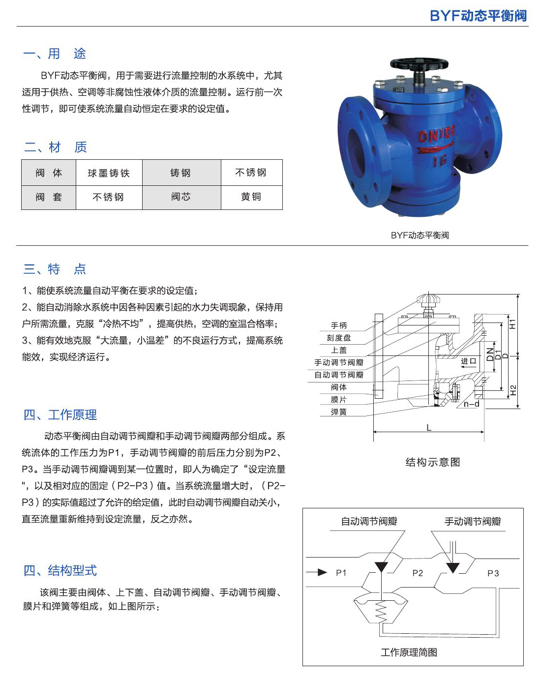 BYF動態平衡閥,用于需要進行流量控制的水系統中,尤其適用于供熱、空調等非腐蝕性液體介質的流量控制。